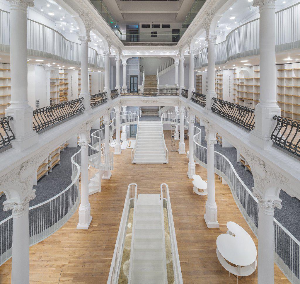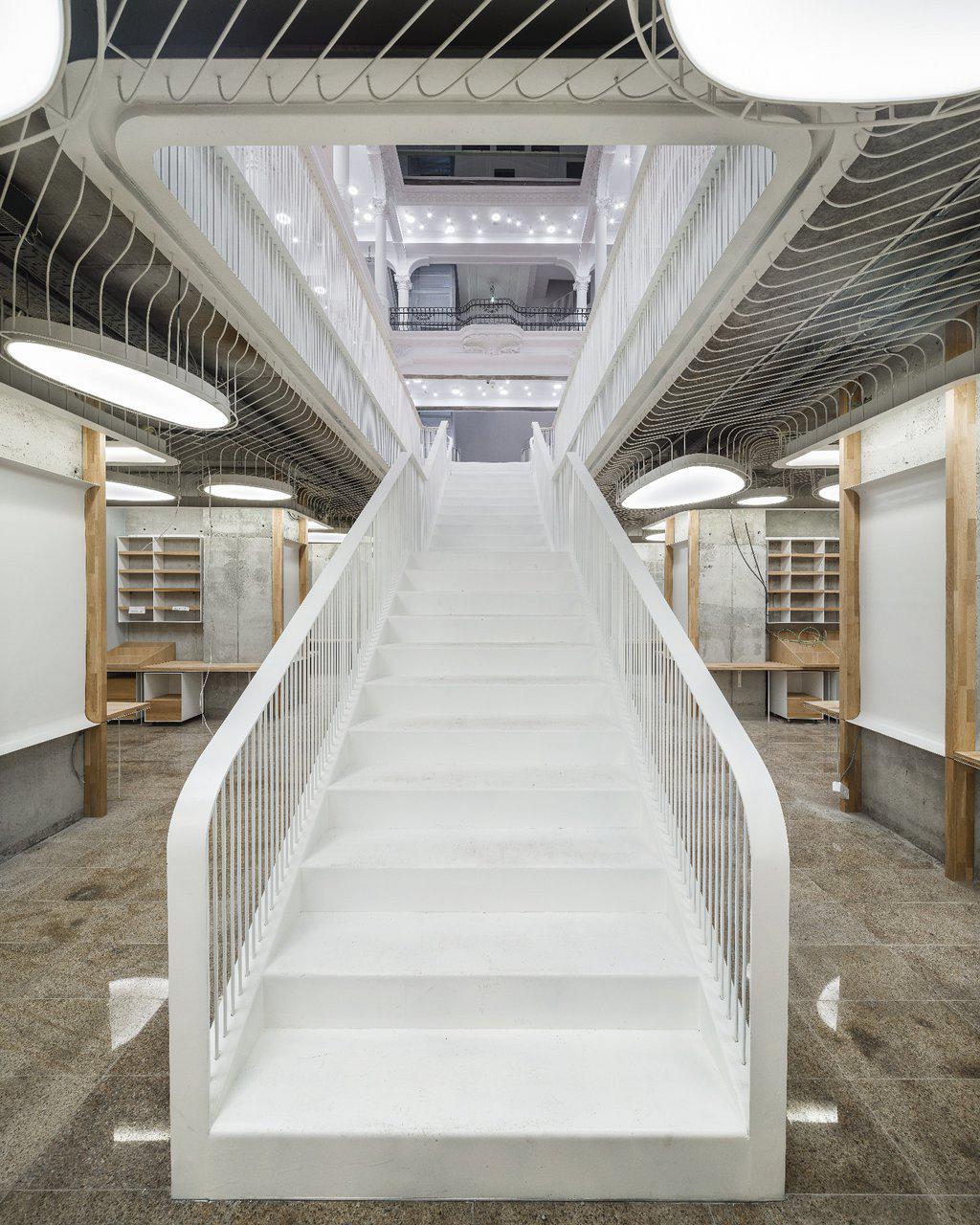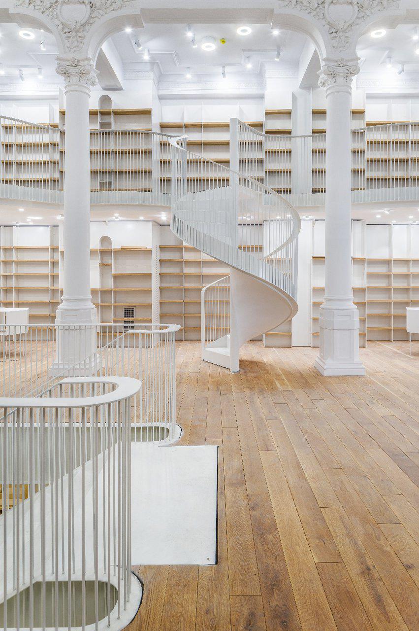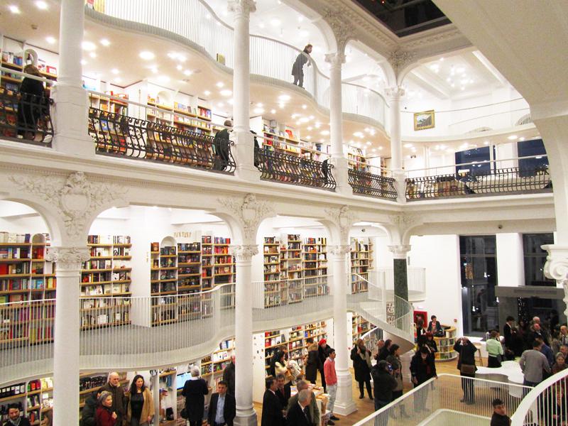 Αυτό που βλέπετε είναι ένα θεαματικό βιβλιοπωλείο-πολυχώρος που άνοιξε πρόσφατα στο Βουκουρέστι, άδειο και γαλήνιο. Όπως διαβάσαμε εδώ (ευχαριστούμε, Google Translate), το βιβλιοπωλείο στεγάζεται σε ένα χώρο 1000 τ.μ. και έξι επιπέδων, σε ανακαινισμένο διατηρητέο κτίριο που ανήκει στην οικογένεια Χρυσοβελώνη που -κάνουμε μια τρελή μαντεψιά- μάλλον είναι Έλληνες.